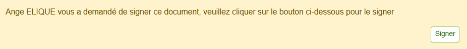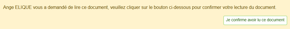 5. Le collaborateur reçoit par mail un lien d'accès avec un lien dynamique vers le document disponible dans son espace documentaire. Une fenêtre jaune s'affiche en haut de l'écran pour demander une action de la part du destinataire.