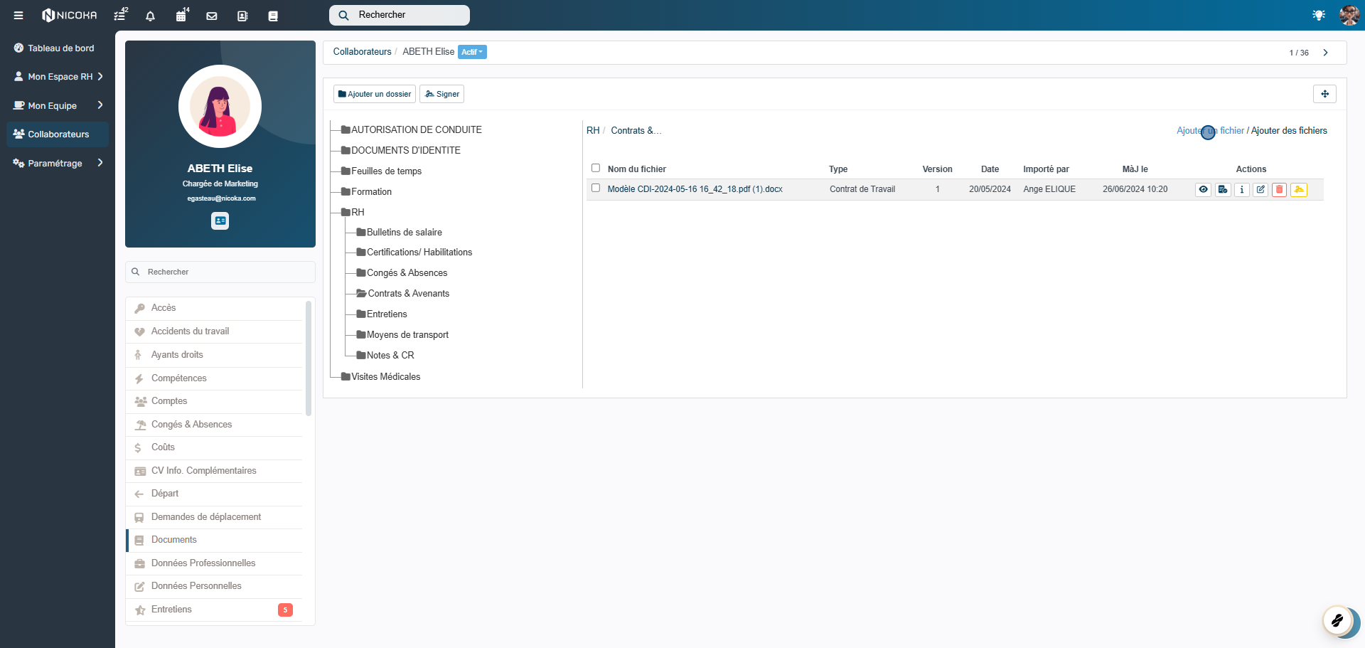 - Allez dans le dossier du collaborateur dans la partie "Documents".