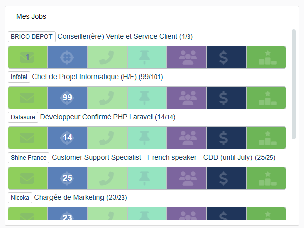 Vos jobs sont accessibles depuis votre tableau via le widget Mes jobs.