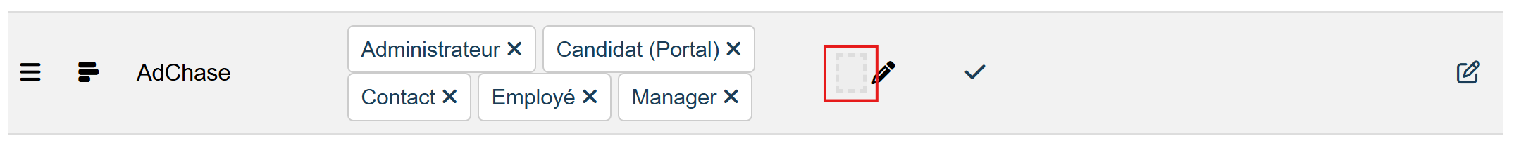 Ouvrez le paramétrage du Module CRM > Comptes > Modules et cocher la case Actif au niveau de l'élément de menu AdChase.
