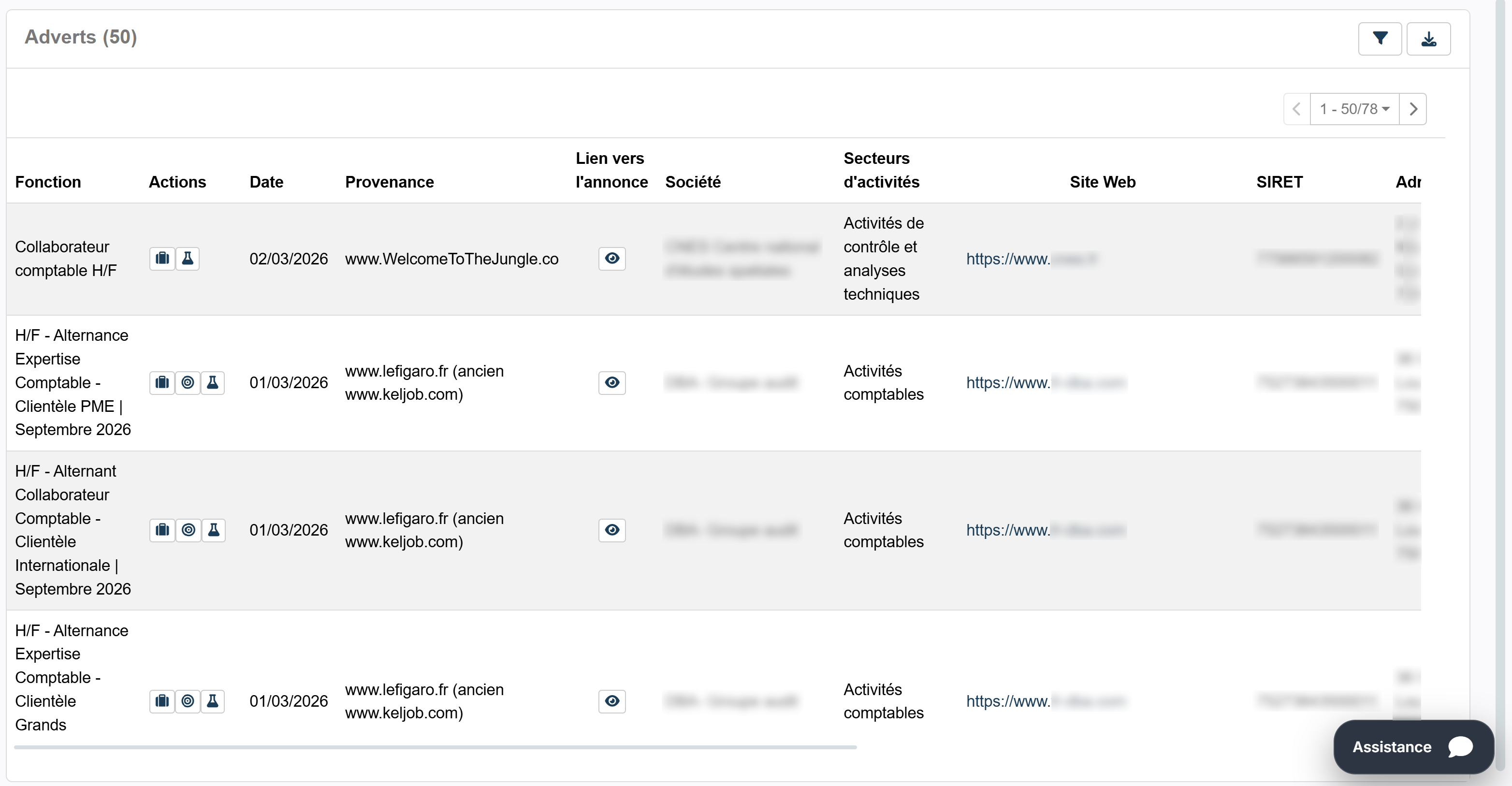 index Advertsdata est un outil qui regroupe des données liées à des offres d'emploi (titre, description, salaire, localisation, date, etc.). Il permet de retrouver rapidement une offre d'emploi, de filtrer les résultats selon certains critères et d’analyser l’ensemble des informations de manière claire et structurée. Pour utiliser cette fonctionnalité, vous devez avoir un compte index Advertsdata.